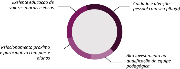 Em um levantamento feito com os pais de alunos do ensino médio, fundamental e básico de escolas particulares em todo país afirma-se que a atenção e o cuidado pessoal com os alunos são o fator mais importante na hora de escolher a instituição de ensino para matricular seu filho.